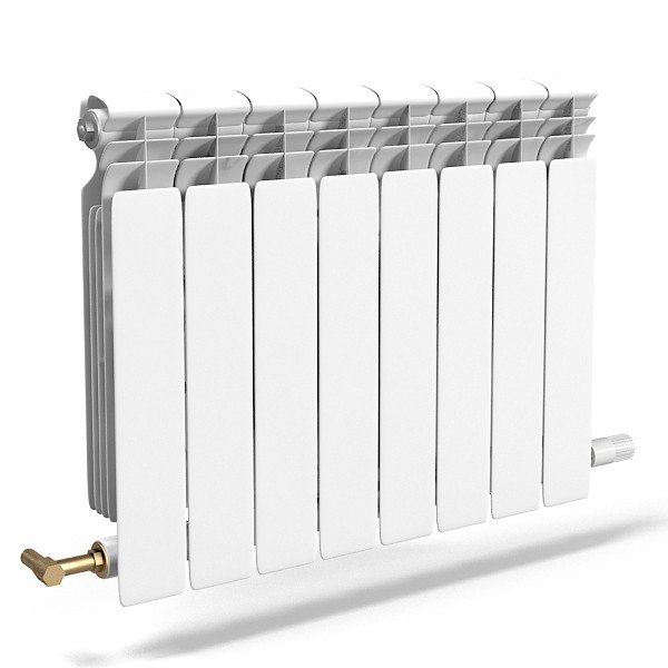 Radiador dividido em elementos, que são dimensionados para cada ambiente conforme cálculo de potência térmica, garantindo um aquecimento adequado.